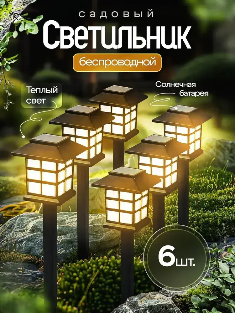 Беспроводной светильник на солнечной батарее, 6 шт, теплый свет, фонарь для дачи сада и огорода уличный