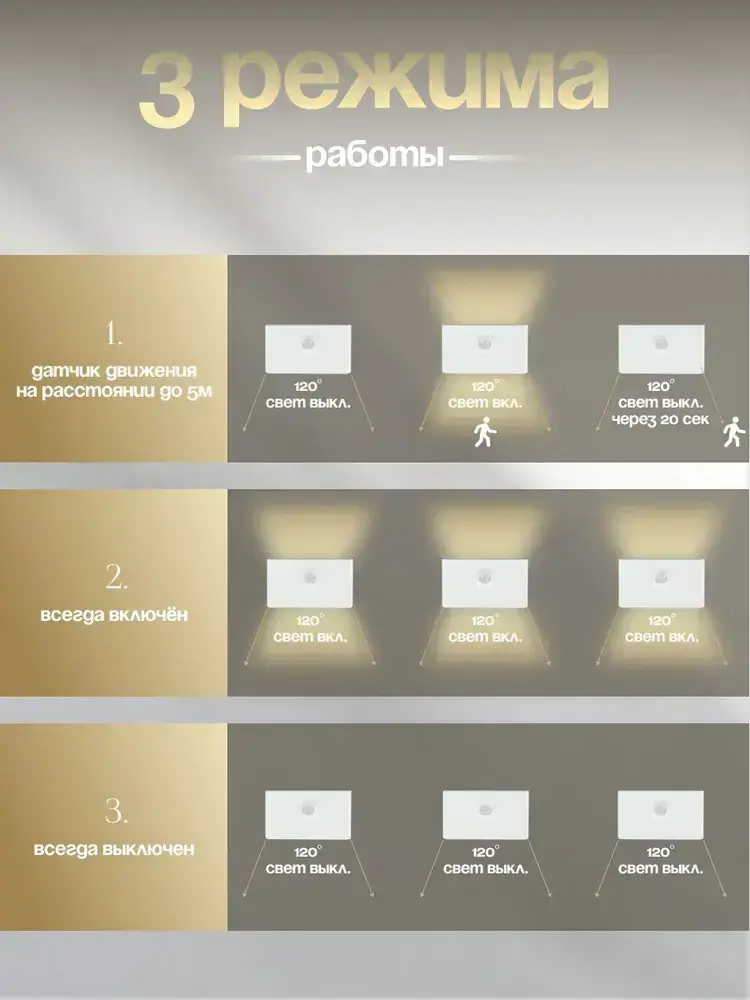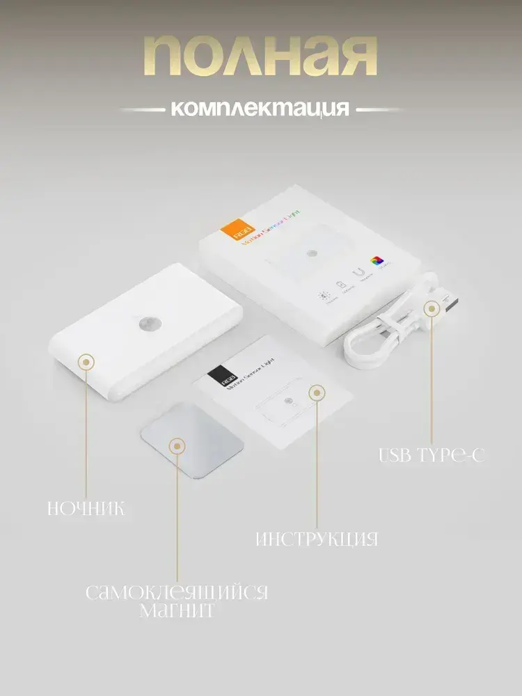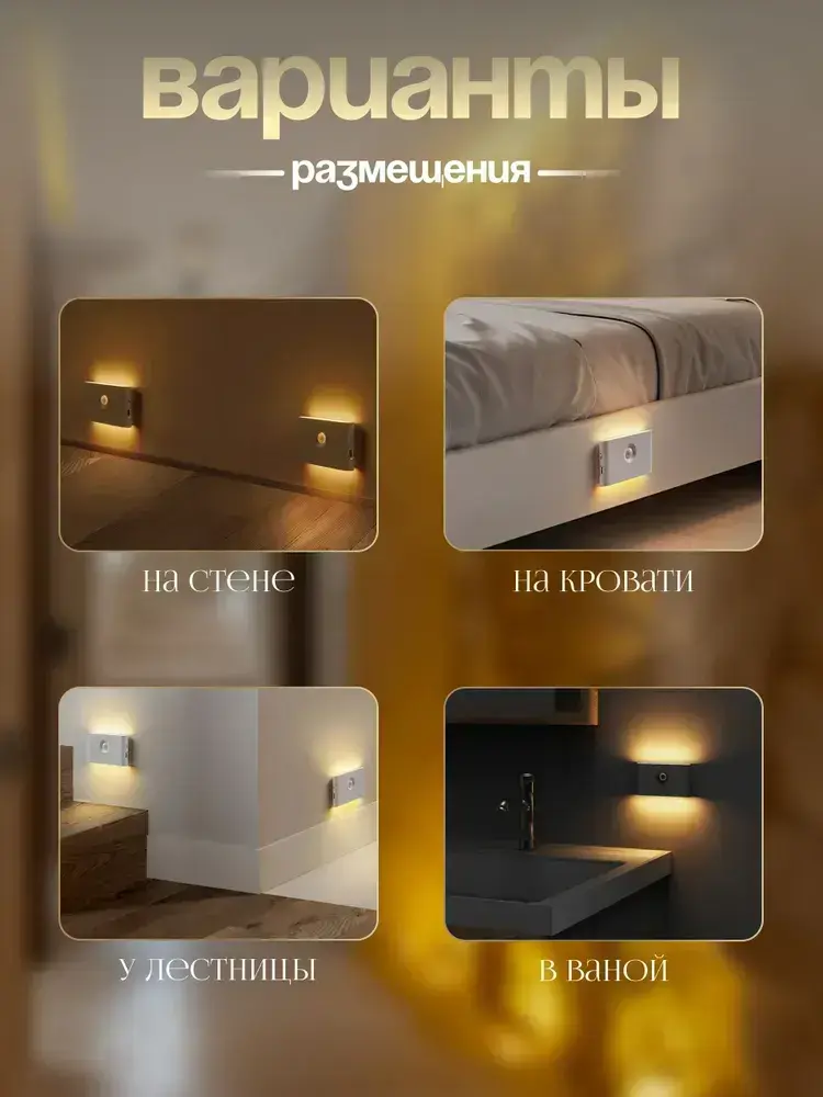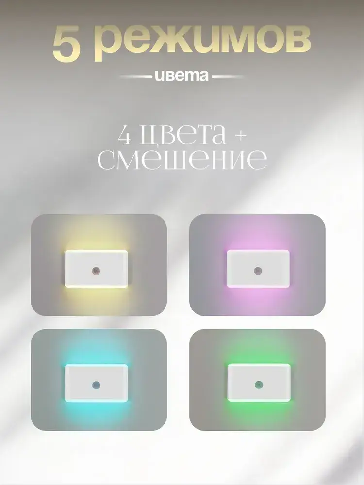 Беспроводной светильник с датчиком движения. Умный ночник с датчиком движения 5 цветов +вайб 1 штука