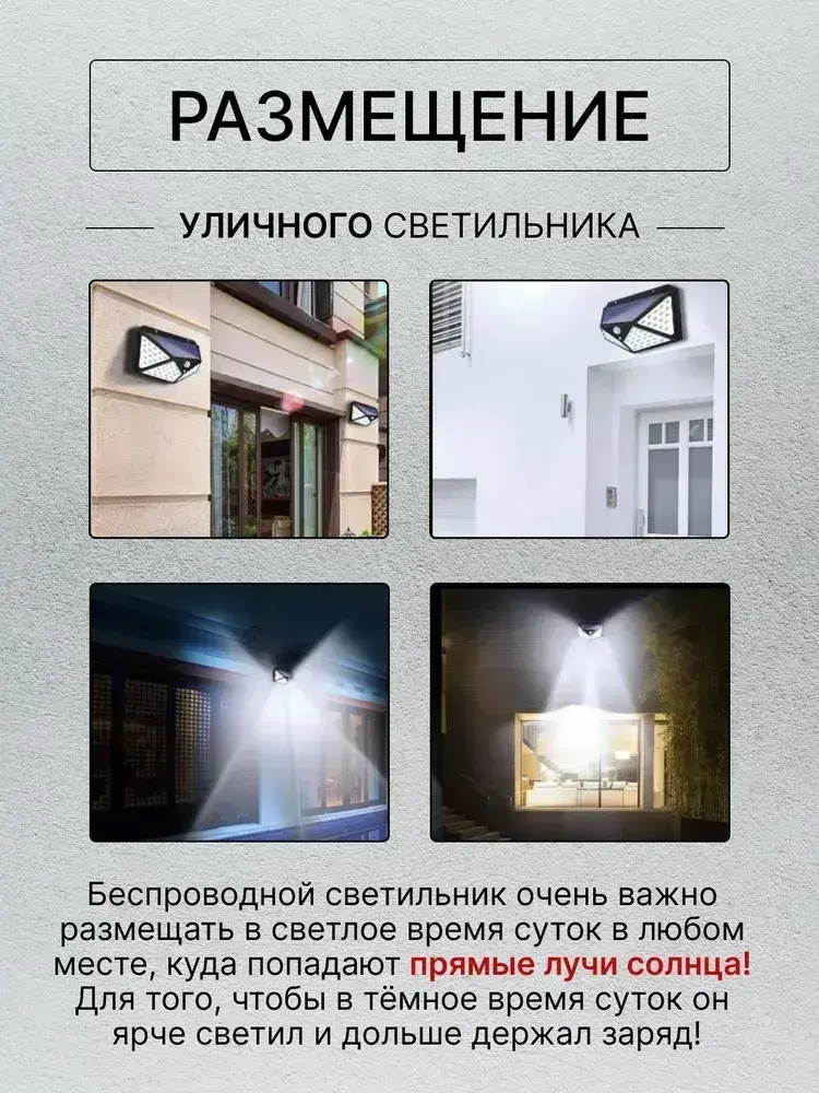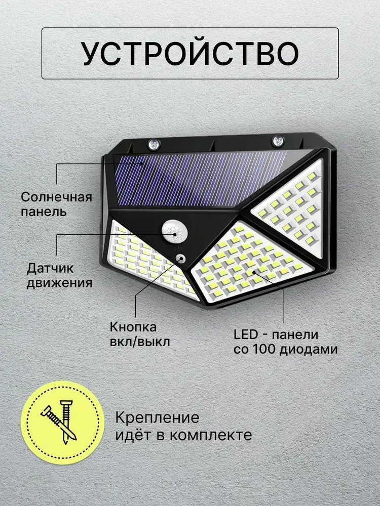 Беспроводной светодиодный светильник / прожектор с 100 LED лампами на солнечной батарее и датчиком движения