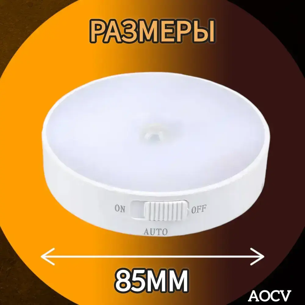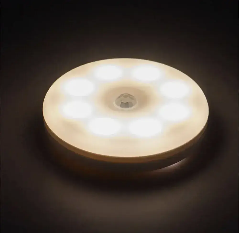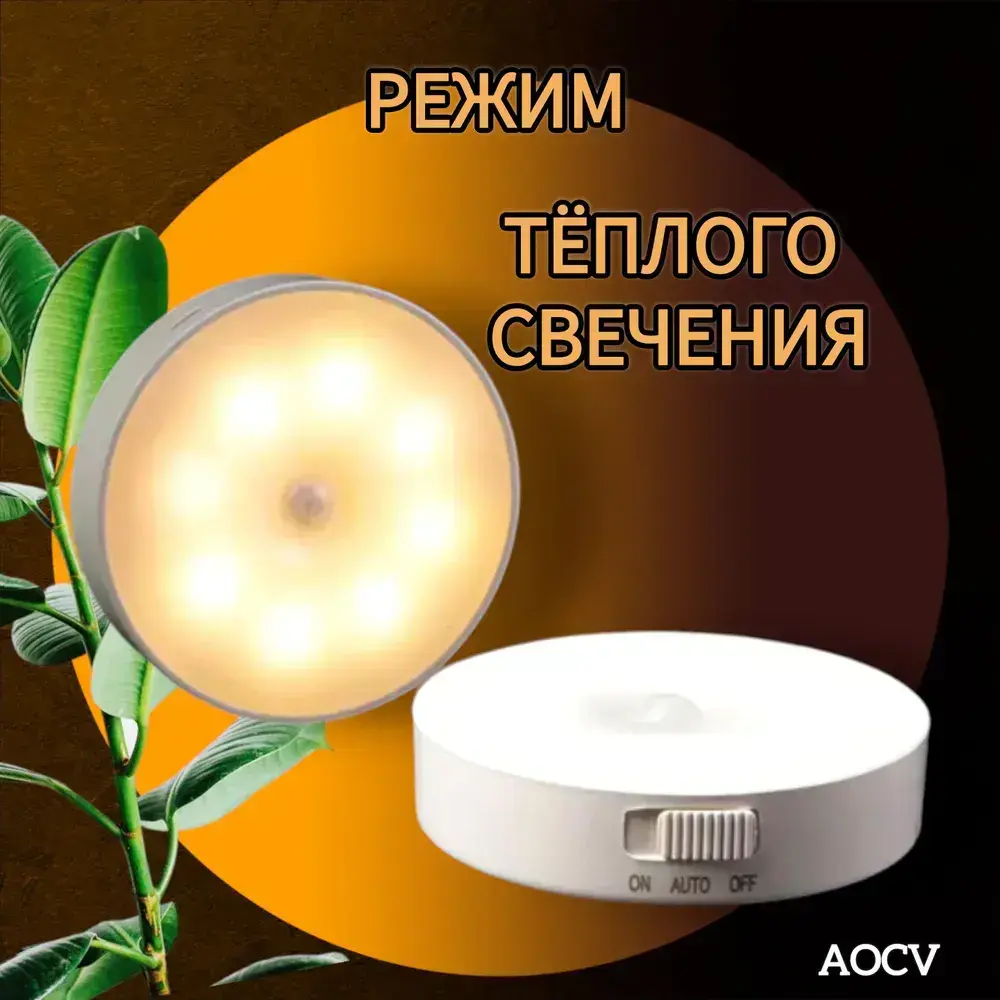 Беспроводной светодиодный светильник с датчиком движения круглый ,режим теплый