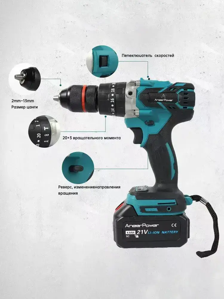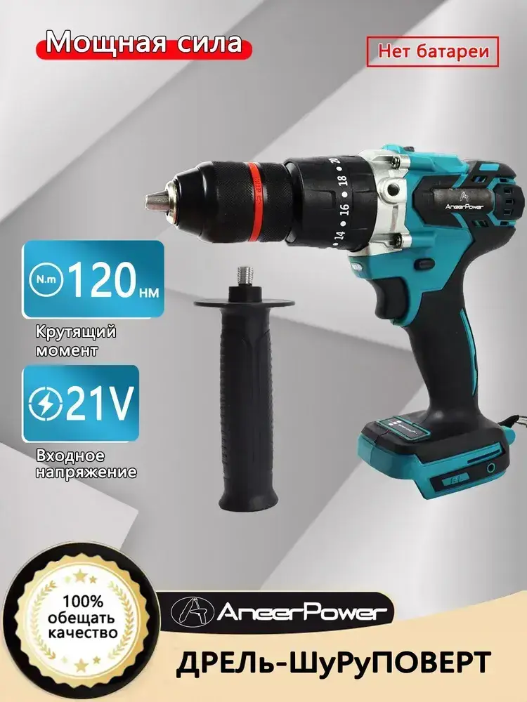 Бесщеточный ударный ледобур Aneerpower, 21 В, 120 Нм, спортивный режим 20+3, 2 скорости + 1 вспомогательная рукоятка (батарея в комплект не входит)