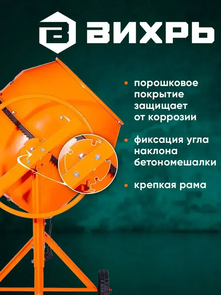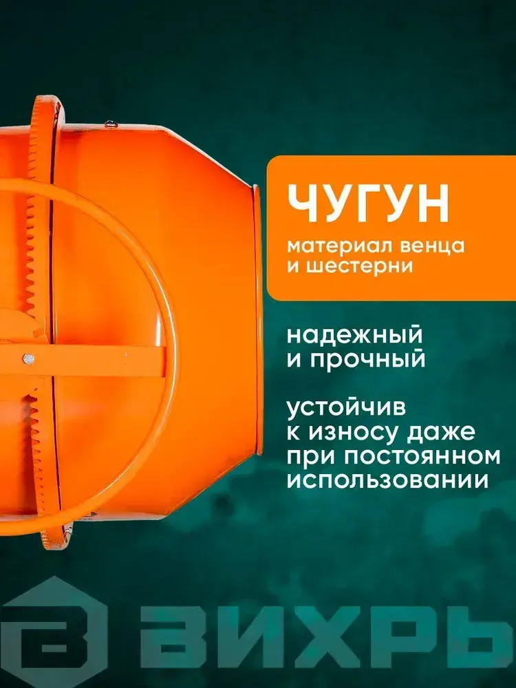 Бетономешалка строительная 180 Вихрь чугунный венец