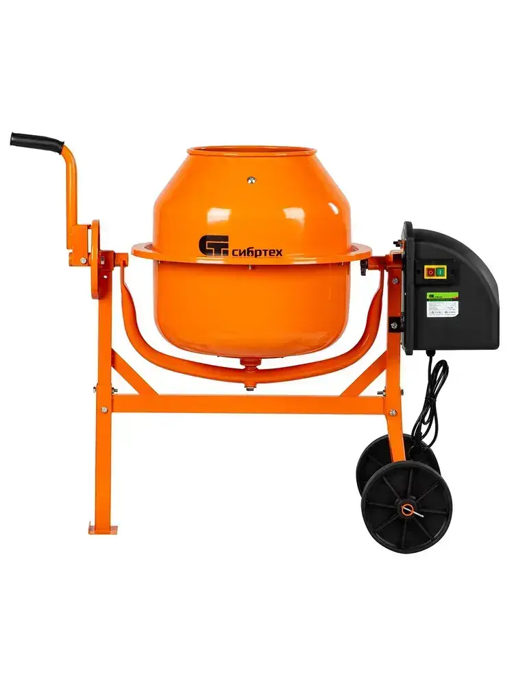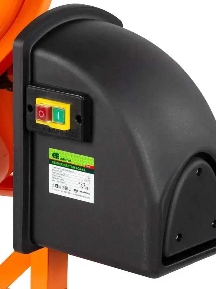 Бетономешалка строительная СИБРТЕХ БСЛ-63, 63 л объем бака и 300 Вт мощность, стальной перфорированный венец и усиленная рама, разъемный узел оси барабана, бетоносмеситель 95469