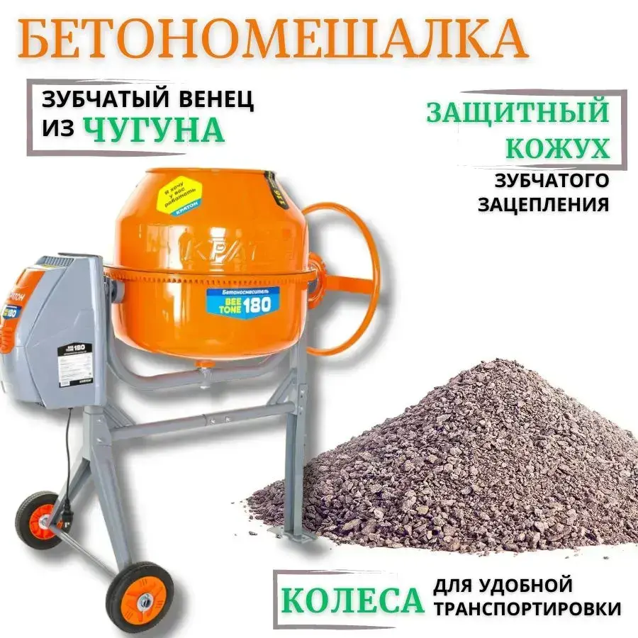 Бетоносмеситель, бетономешалка, миксер Кратон "BeeTone" 180, (650 Вт; объем барабана 180 л)