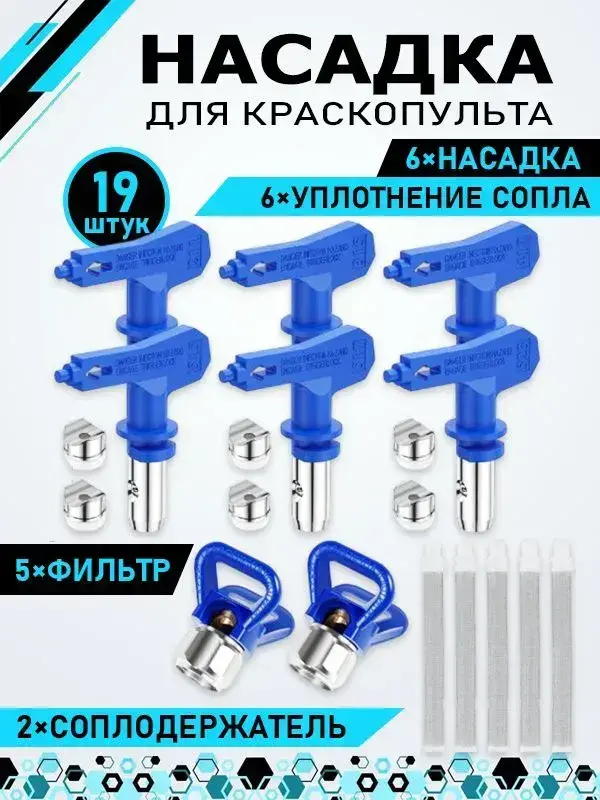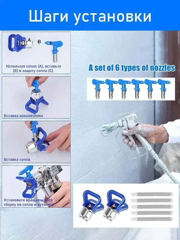 безвоздушных распылителях краски,6 комплектов, с двумя держателями сопел