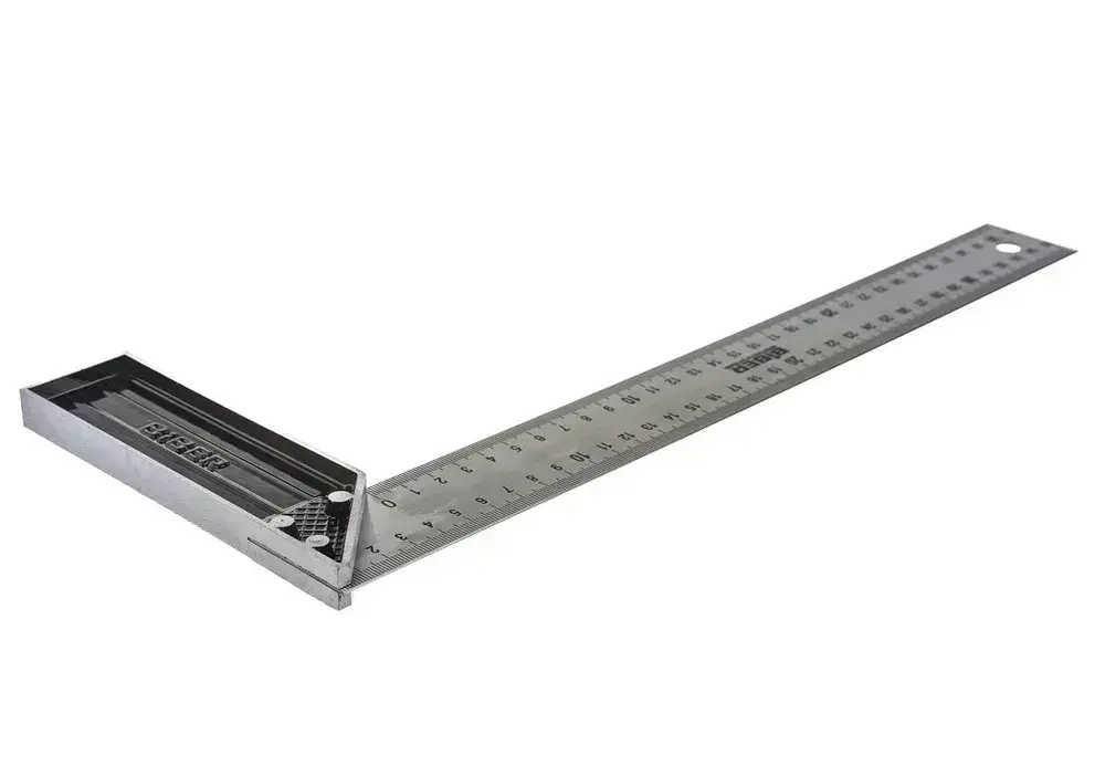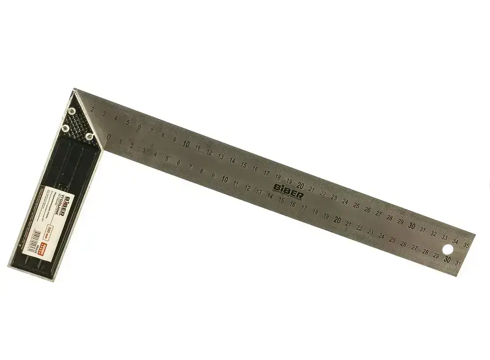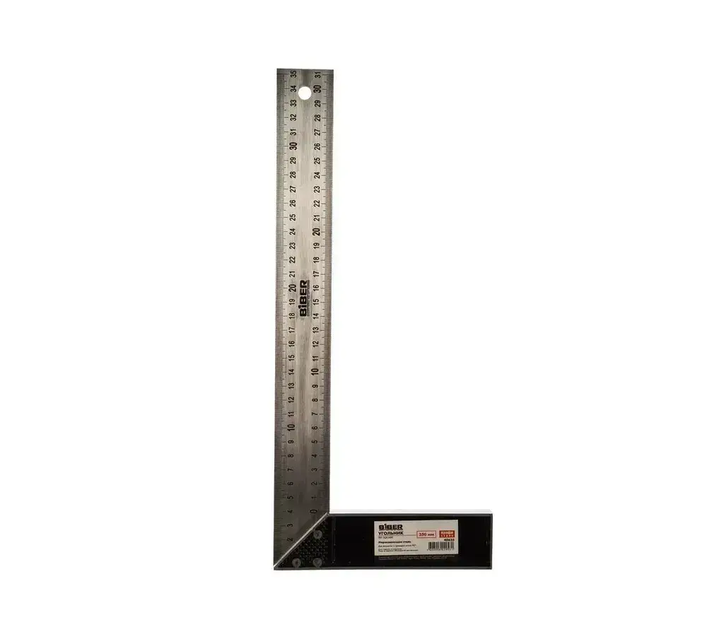 БИБЕР 40635 Угольник столярный ПРОФИ 350мм нержавеющая сталь, гравировка (12/120)