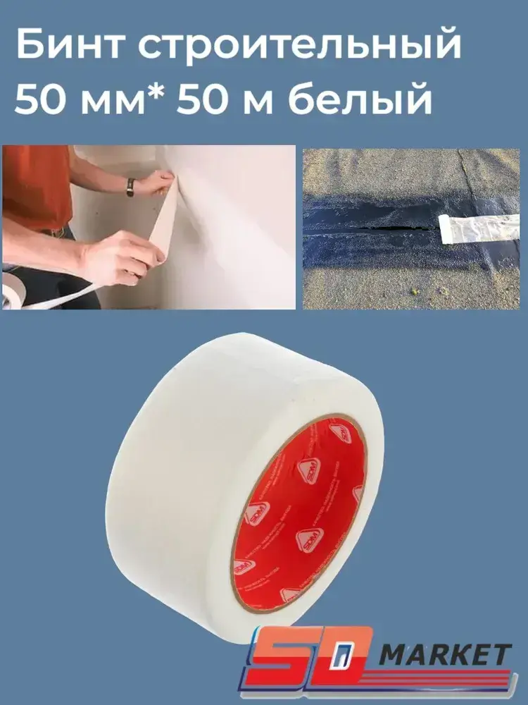 Бинт строительный 50мм* 50м белый SDM, подвязка для растений