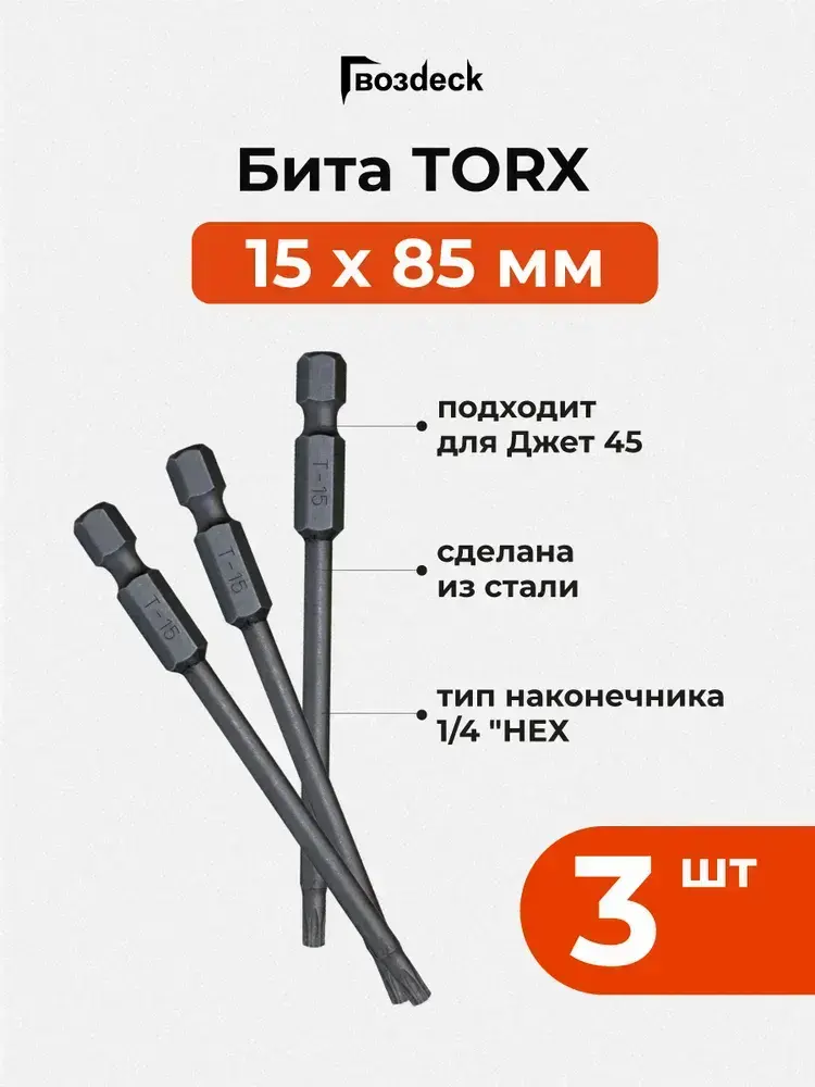 Бита Gwozdeck Torx 15 85 мм для инструмента Джет односторонняя CrV, 3 шт