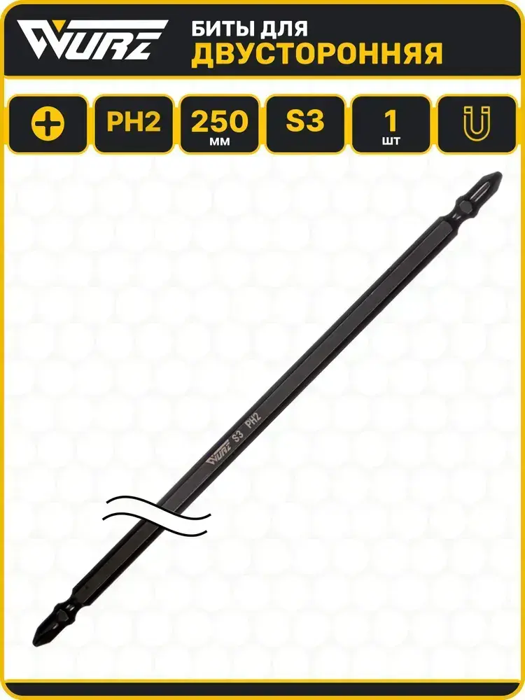 Бита PH2 x 250мм S3 1шт. намагниченная WURZ 4500