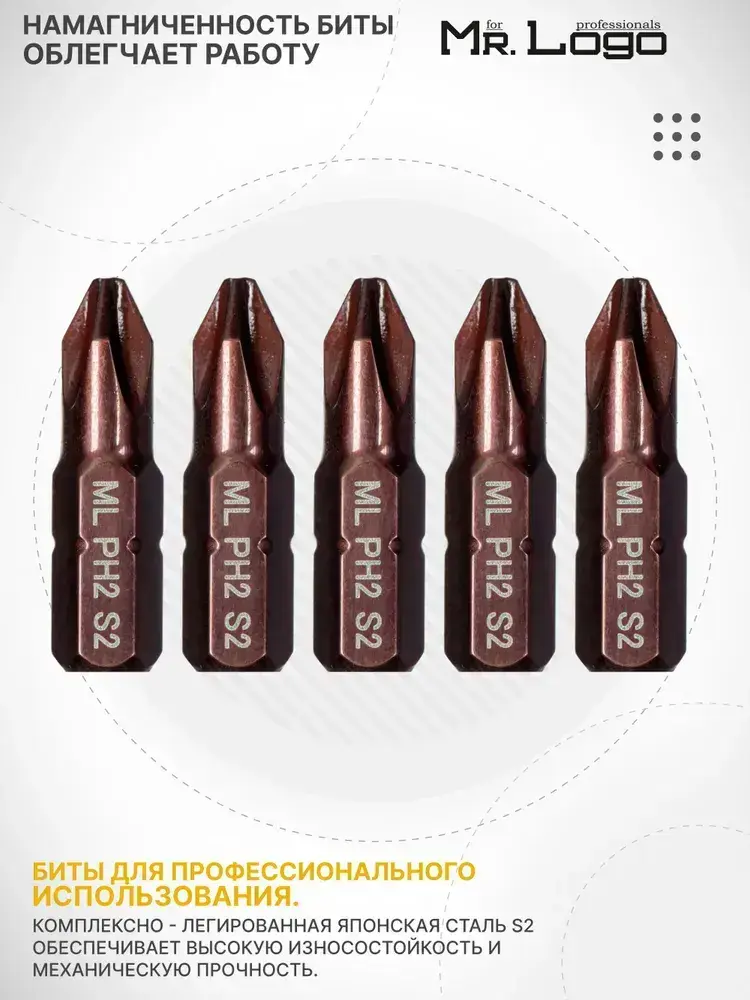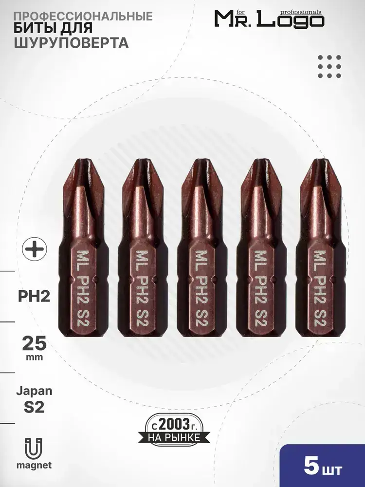 Бита PH2 x 25мм 5шт. S2 намагниченная Mr.Logo ML102502P