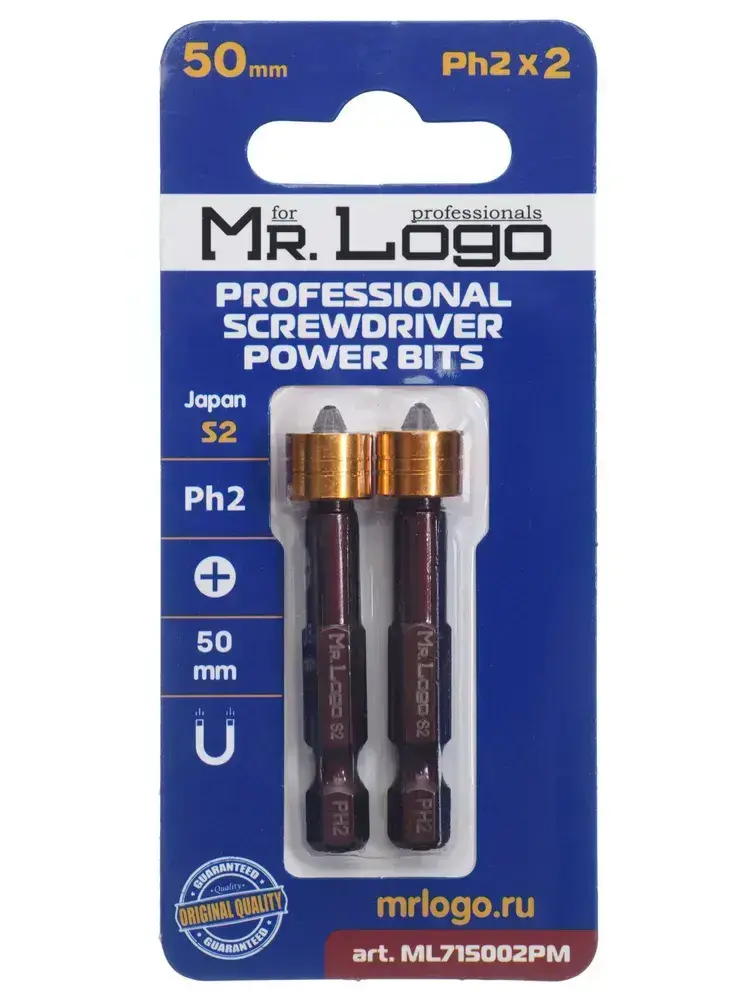 Бита PH2 x 50мм 2шт. S2 с магнитным держателем Mr.Logo ML715002PM