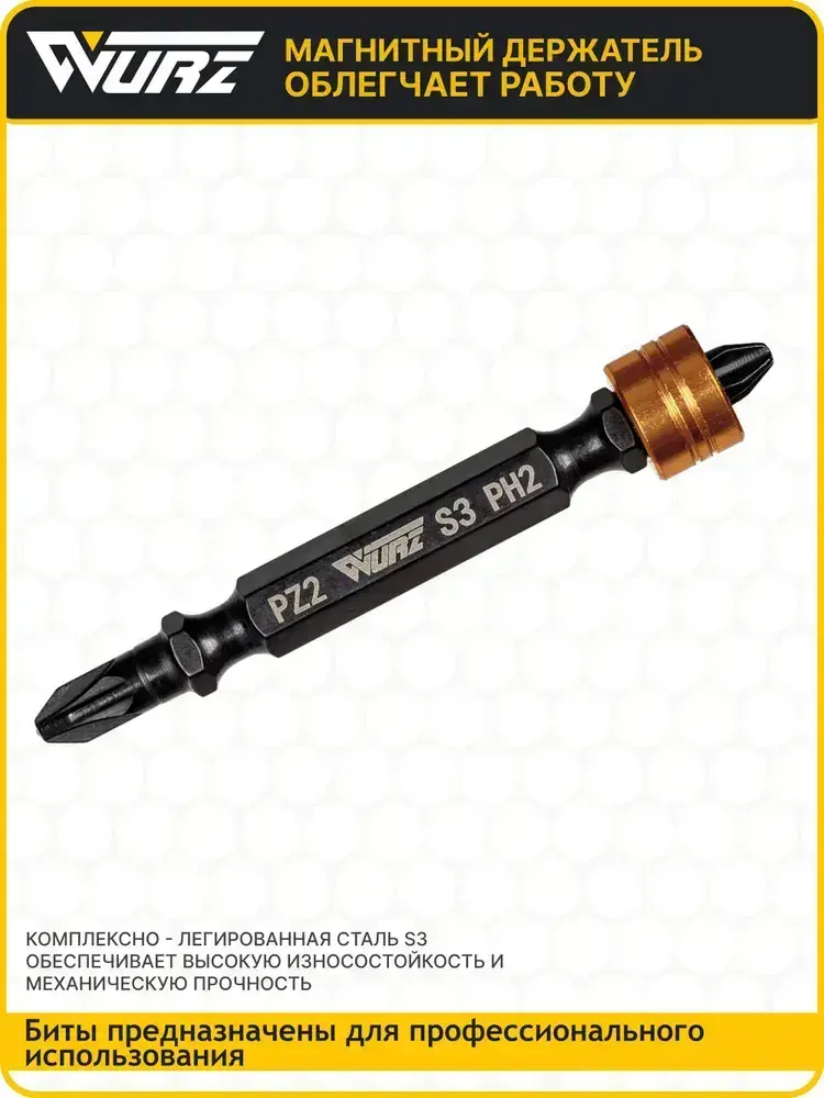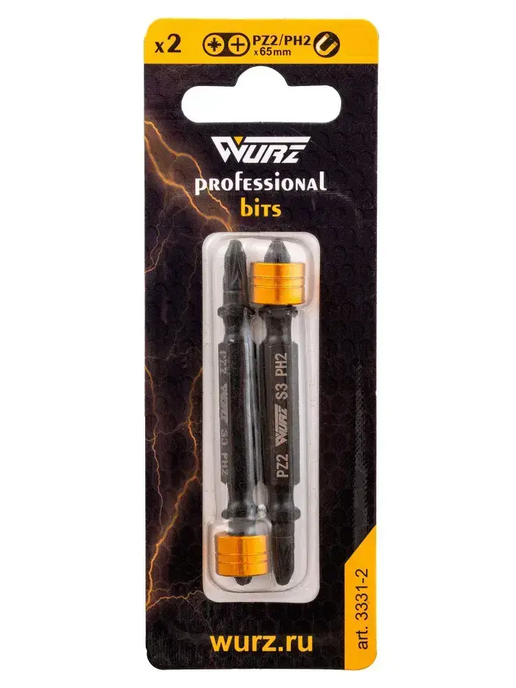 Бита PH2/PZ2 х 65мм S3 2шт. двусторонняя со съемным магнитным держателем WURZ 3331-2