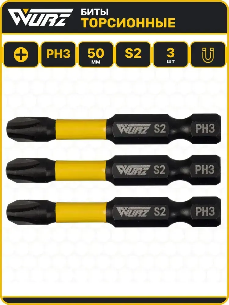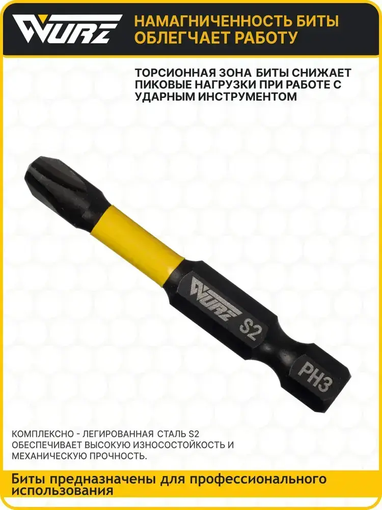Бита PH3 х 50мм S2 3шт. торсионная намагниченная WURZ 2950-3