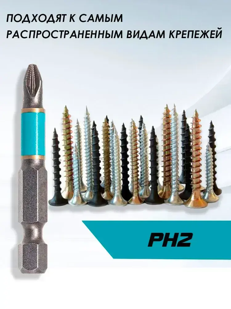 Биты для шуруповерта торсионные PH2 комплект 10 шт