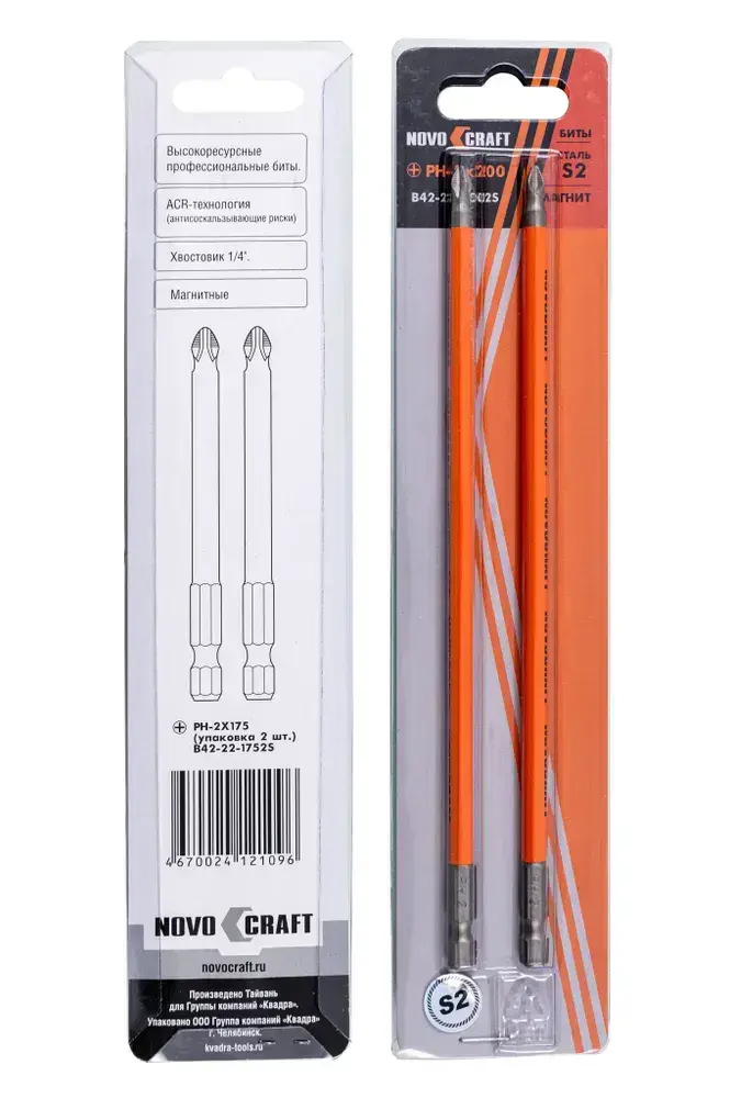 Биты PH 2 X 200 мм (упаковка 2 шт.) Novocraft