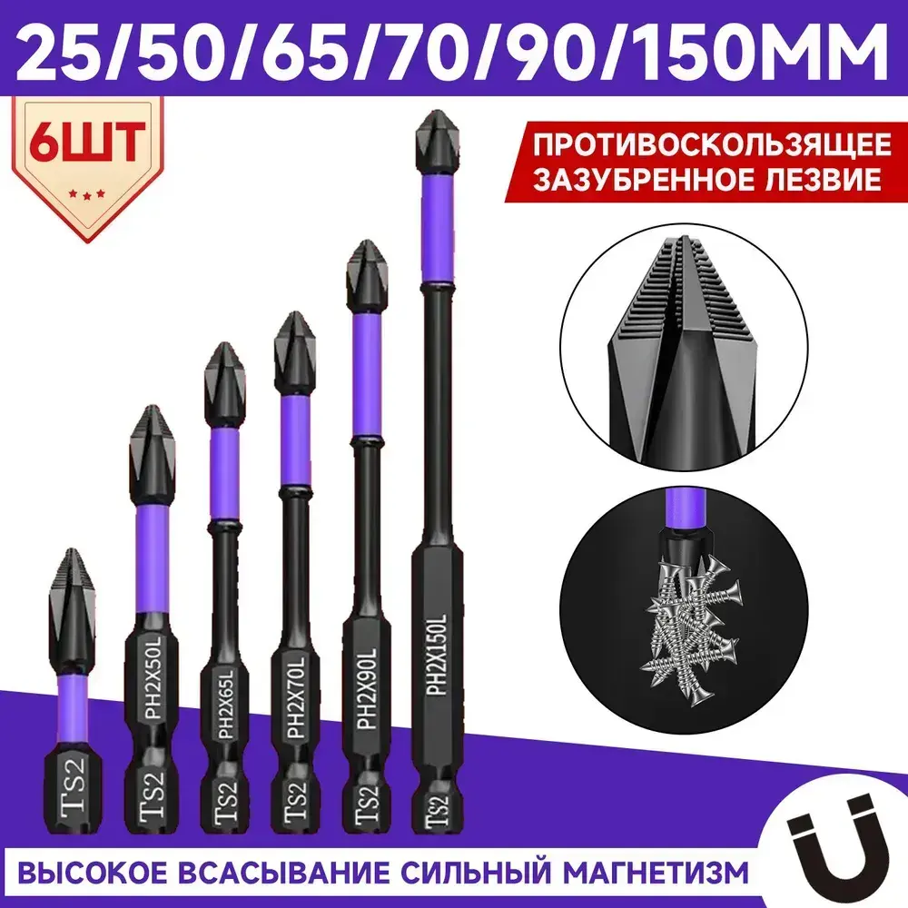 Биты торсионные ударные для шуруповерта 6шт