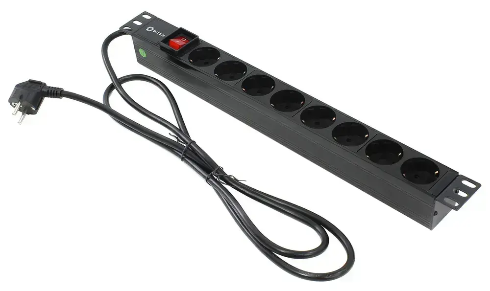 Блок розеток 19", 1U, 8 розеток, кабель 2 метра, огнеупорный пластик, 5bites PDU819P-01
