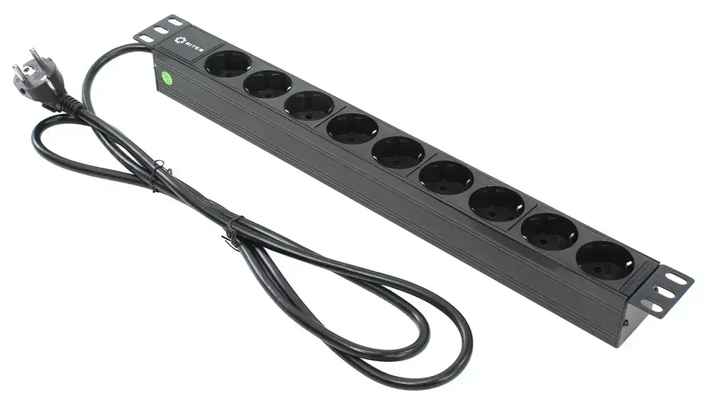 Блок розеток 19", 1U, 9 розеток, 16A, кабель 2 метра, огнеупорный пластик, 5bites PDU919P-02