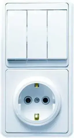 Блок скрытой установки выключатель трехклавишный + розетка с заземлением БКВР-033 Бэлла Кунцево, арт. 5843