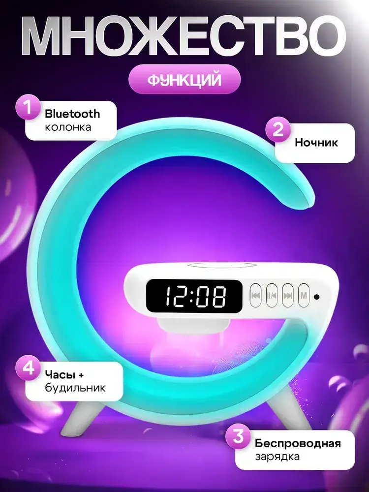 Блютуз колонка ночник с беспроводной зарядкой и подсветкой