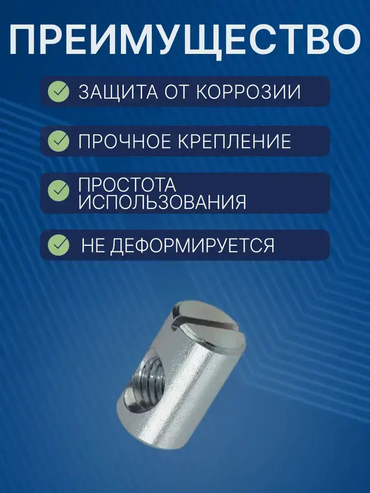 Бочонок для винтовой стяжки М6 10х12 мм, гайка мебельная, 4 шт