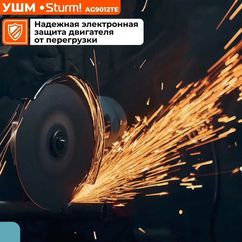 Болгарка 125 электрическая, углошлифовальная машина УШМ с регулировкой оборотов Sturm! 1100Вт, 4000-10000об/мин, константная электроника, кабель 4м