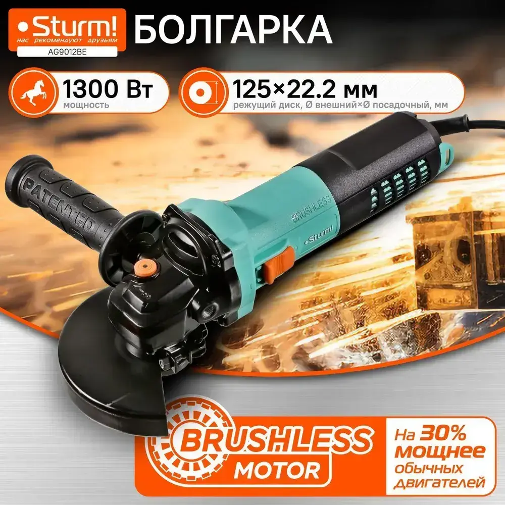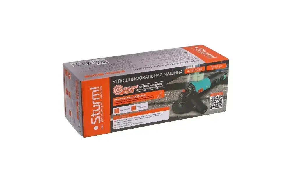 Болгарка 125 электрическая (УШМ) Sturm! бесщеточная 1300Вт, 3000-11000об/мин, кабель 4м
