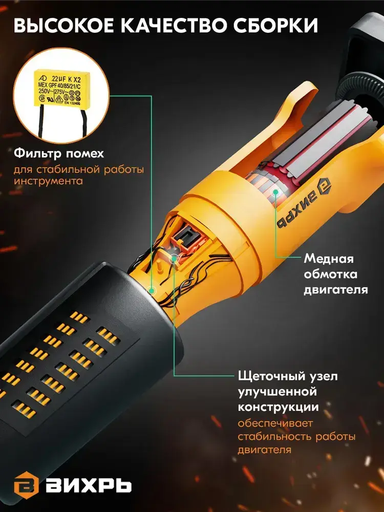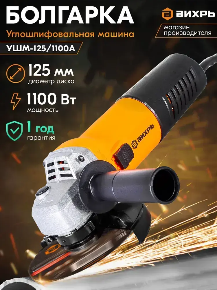 Болгарка 125 Вихрь (УШМ-угловая шлифовальная машина) УШМ-125/1100А, 1100Вт, 125мм, 11 000 об/ мин