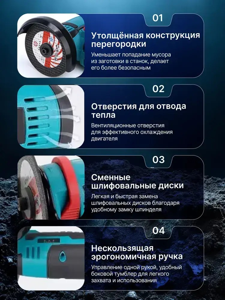 Болгарка аккумуляторная 125 с регулировкой оборотов, УШМ, Шлифовальная машинка