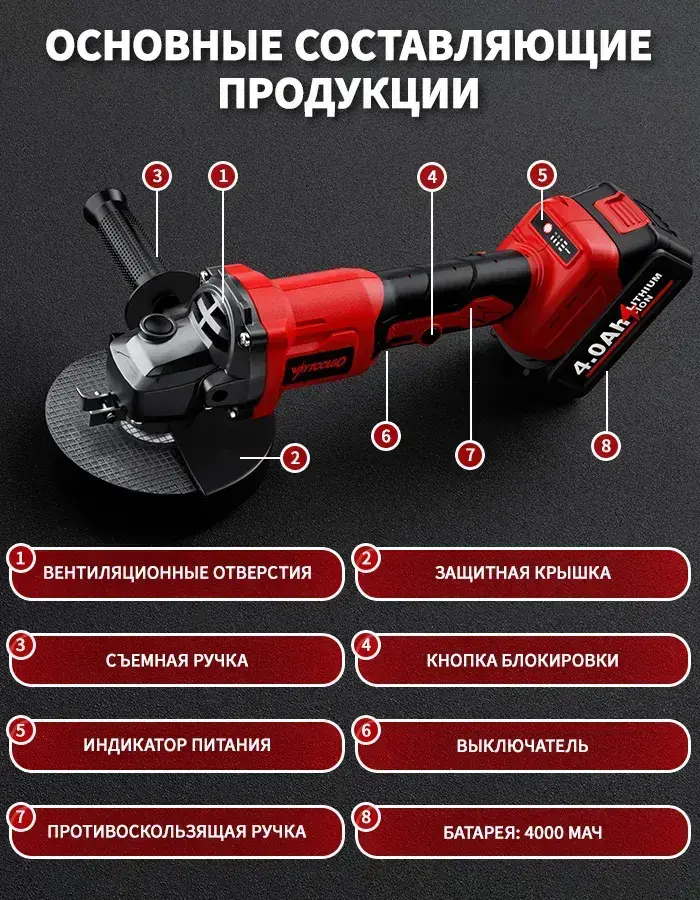 Болгарка аккумуляторная бесщеточная 21В в кейсе углошлифовальная машина, плиткорез электрический, 125ММ ушм аккумуляторная