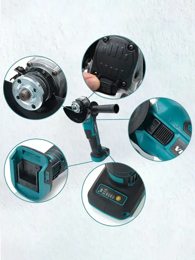Болгарка аккумуляторная бесщеточная , УШМ 125 мм, плавный пуск с регулировкой до 11000 об/м, 800W, 2 АКБ и 1 ЗУ