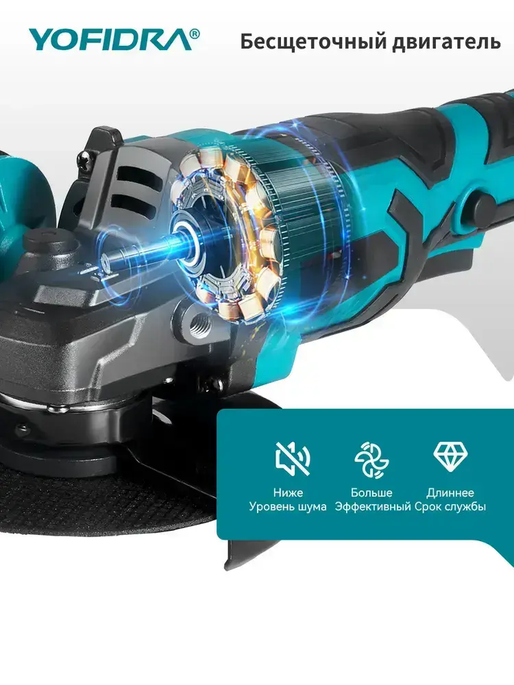 Болгарка аккумуляторная бесщеточная, УШМ, 125 / шлифмашина/ 1500 Вт, 2 аккумулятора 18-21 В 4 А*ч