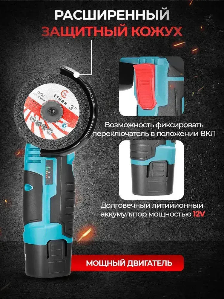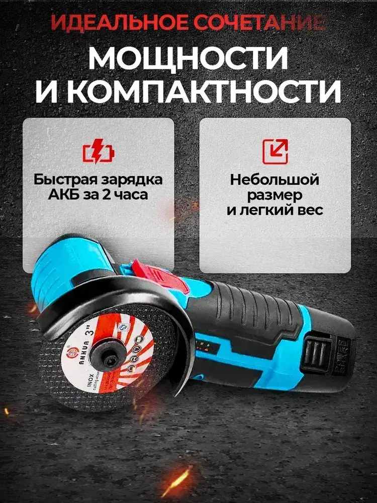 Болгарка аккумуляторная мини ушм, Угловая шлифовальная машина, 19500 об/мин