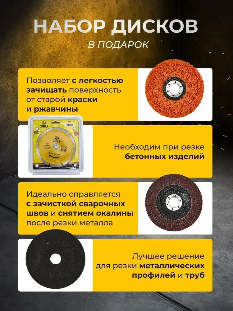 Болгарка аккумуляторная с регулировкой оборотов, УШМ аккумуляторная, с комплектом дисков, 2 АКБ