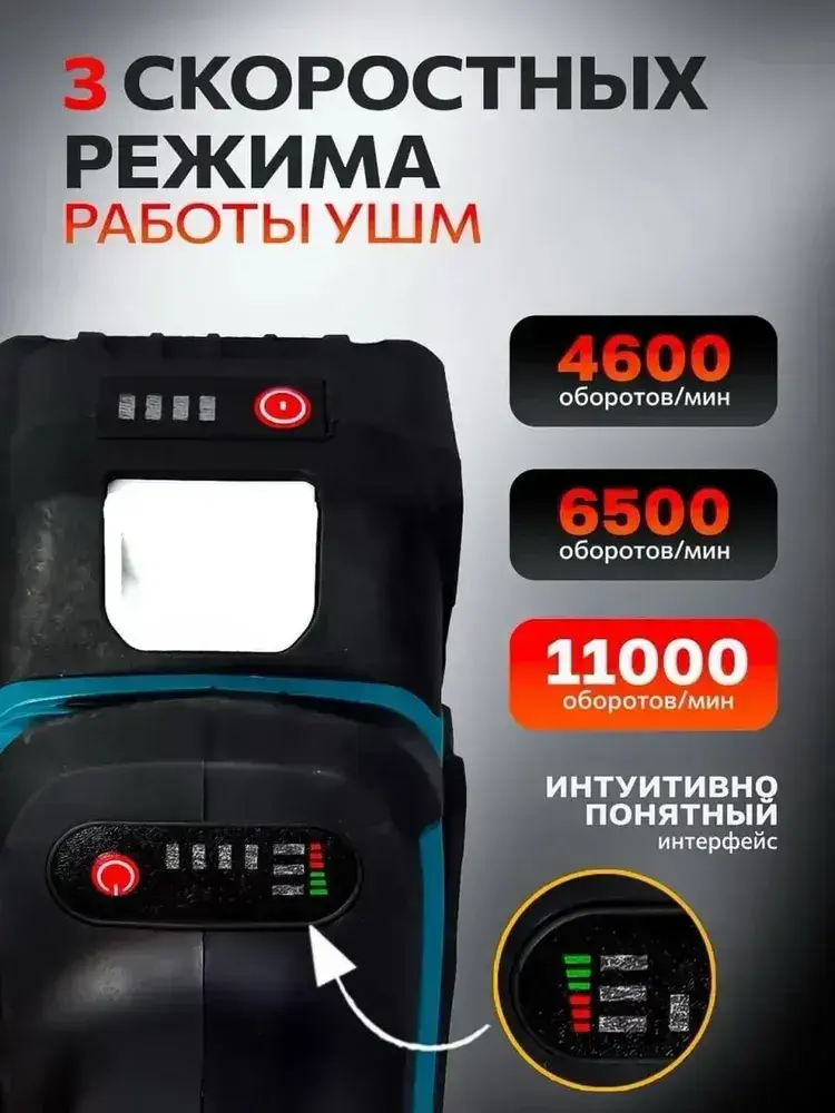 Болгарка аккумуляторная, УШМ 125 мм, полный