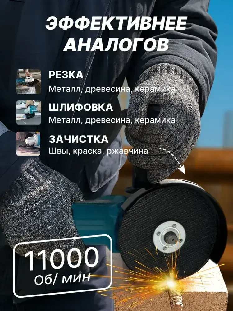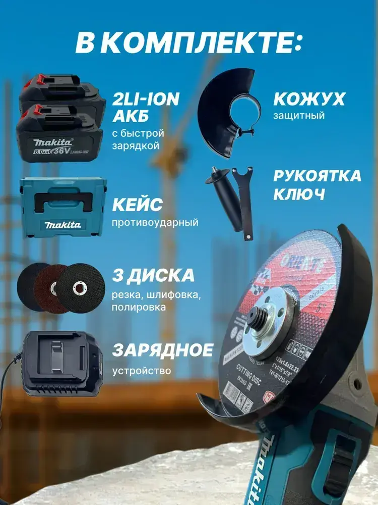 Болгарка аккумуляторная, Ушм с регулировкой оборотов, 125 мм, бесщеточный двигатель, 2 АКБ