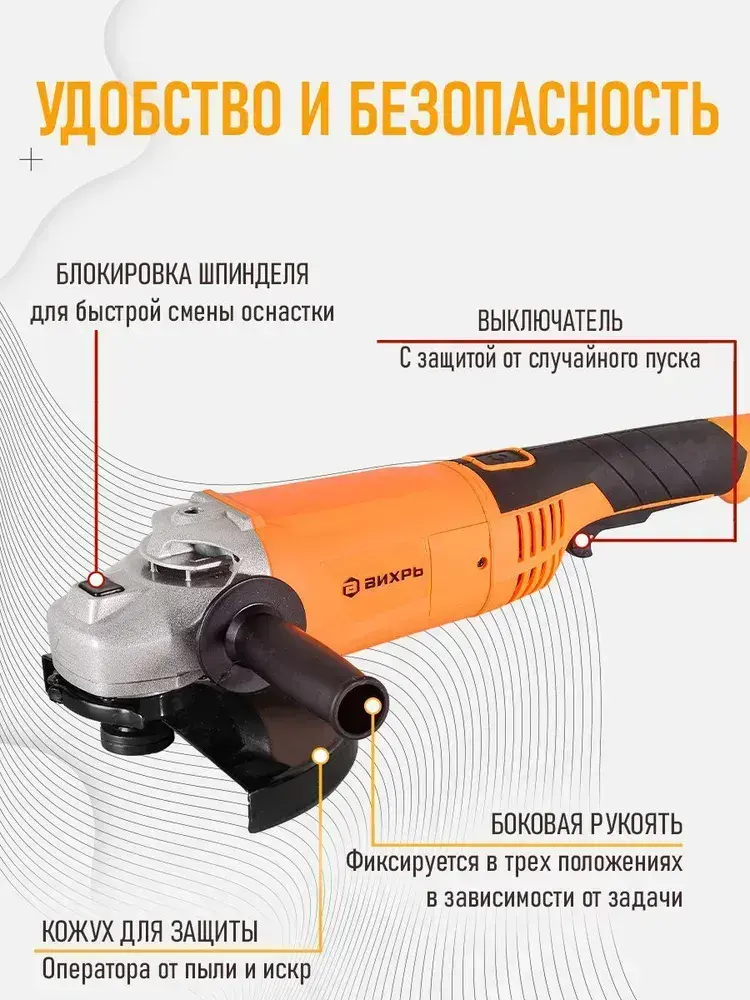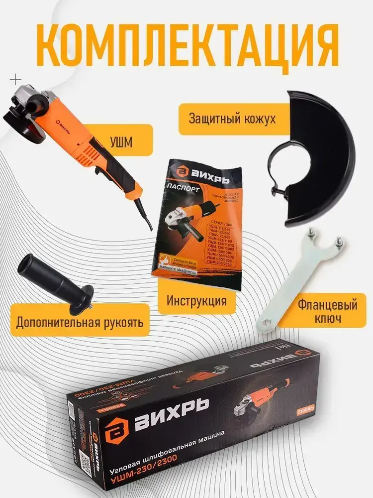 Болгарка УШМ-230/2300 Вихрь 2300 Вт, 230мм, 6000 об/ мин, болгарка 230мм // ГАРАНТИЯ 1 ГОД