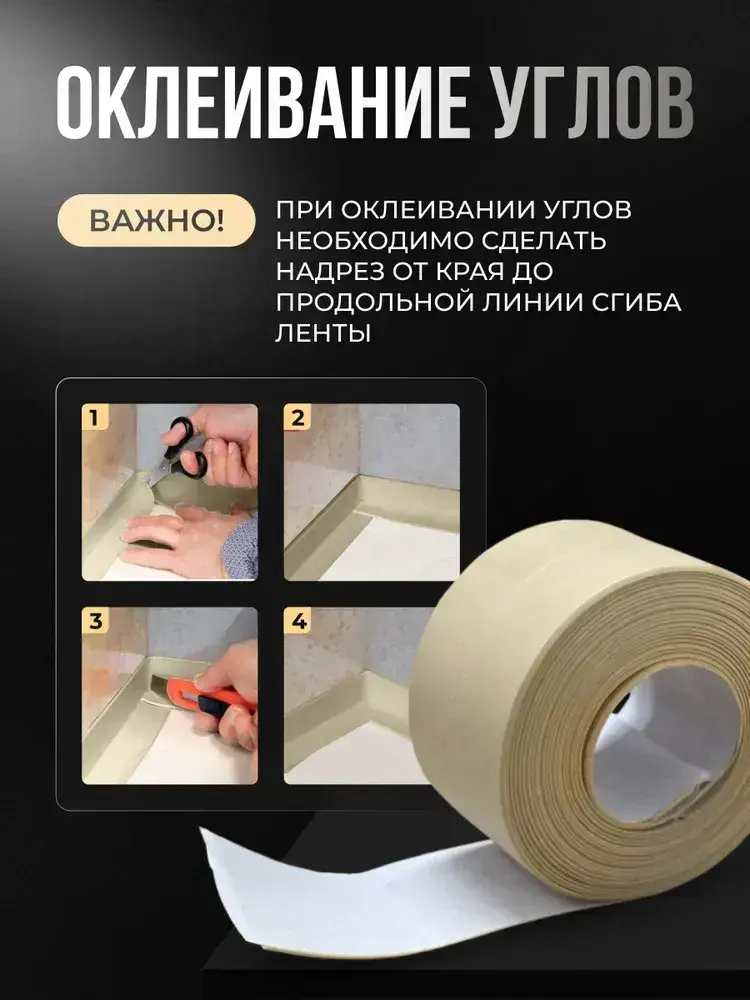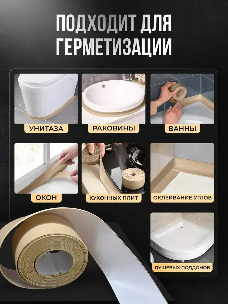 Бордюрная лента для ванны и кухни 22мм 3,2м. Самоклеящаяся декоративная клейкая лента бежевая, декоративный скотч