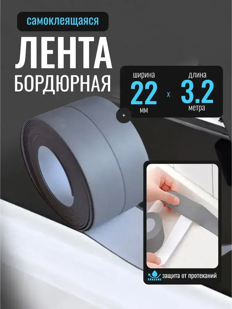 Бордюрная лента для ванны и кухни 22мм 3,2м серая. Самоклеящаяся декоративная клейкая лента, декоративный скотч