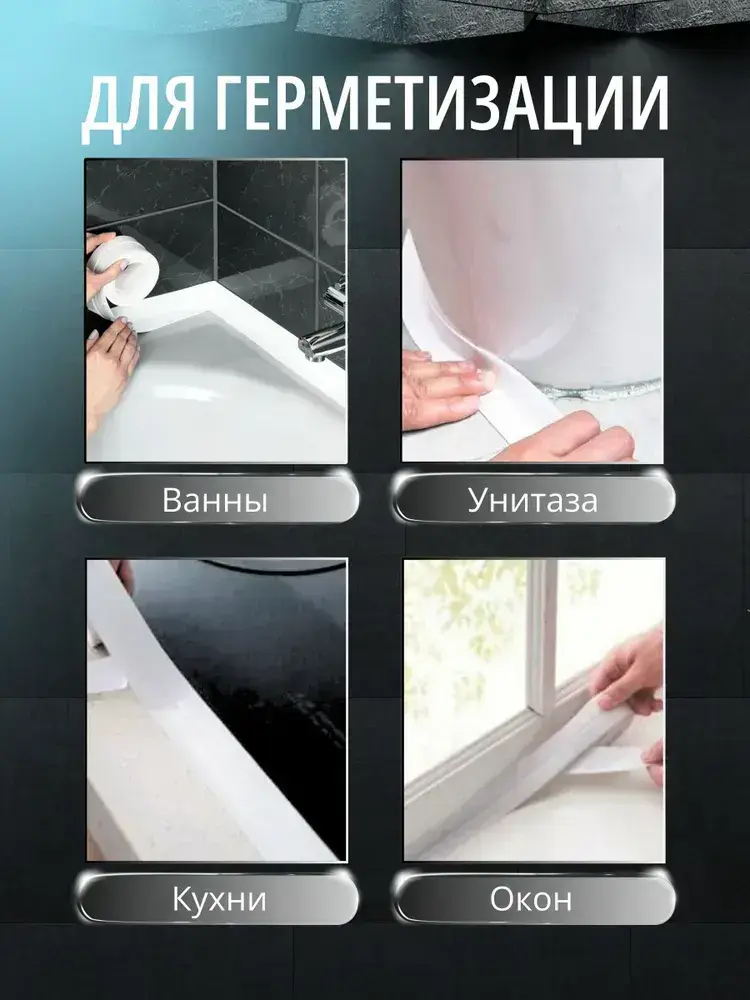Бордюрная лента для ванны и кухни 38мм 3,2м. Самоклеящаяся декоративная клейкая лента, белая