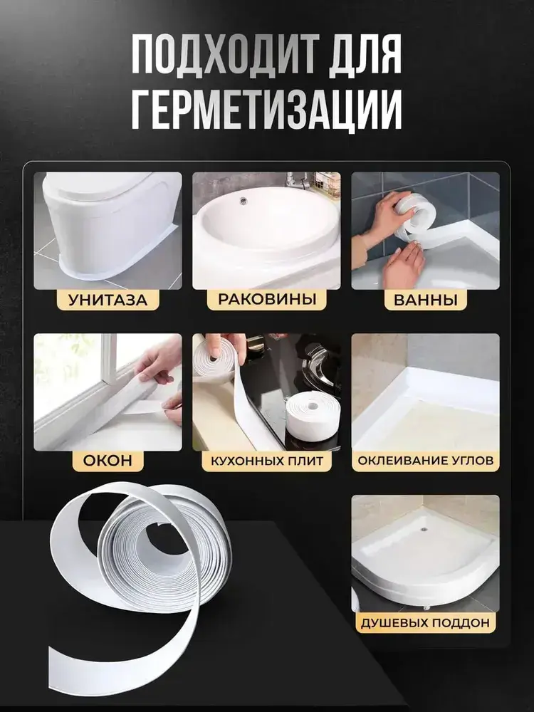 Бордюрная лента для ванны и кухни 60мм 3,2м белая. Самоклеющаяся декоративная клейкая лента, декоративный скотч, 3шт