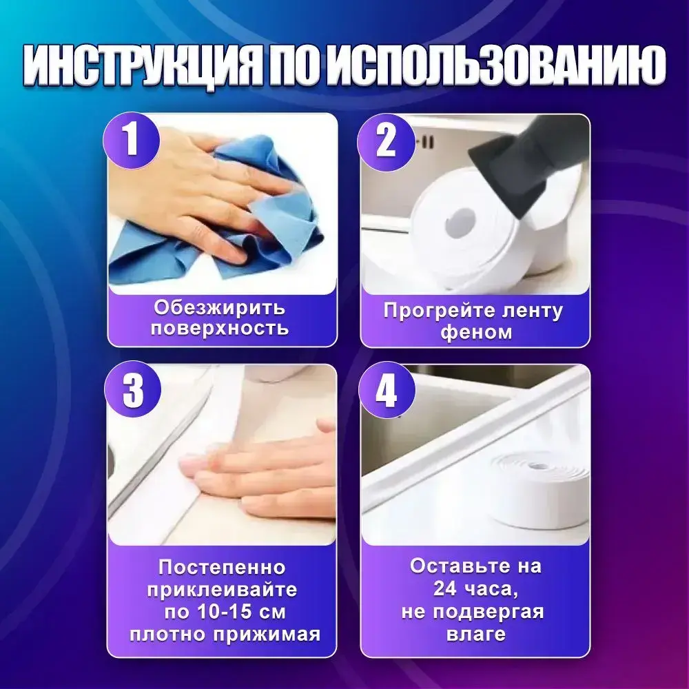 Бордюрная лента для ванны и кухни 60мм 3,2м. Самоклеящаяся декоративная клейкая лента белая, декоративный скотч,1шт
