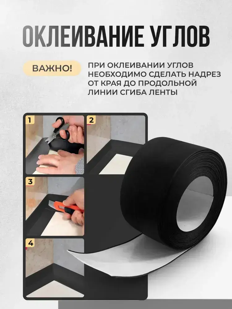 Бордюрная лента для ванны и кухни 80мм 3,2м. Самоклеящаяся декоративная клейкая лента черная, декоративный скотч