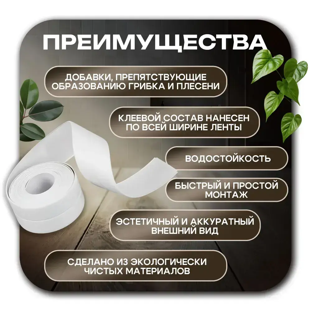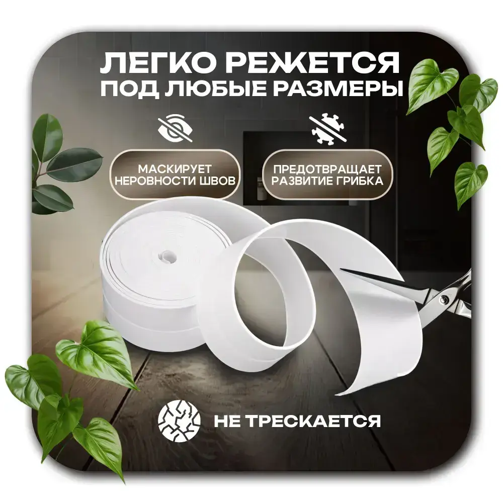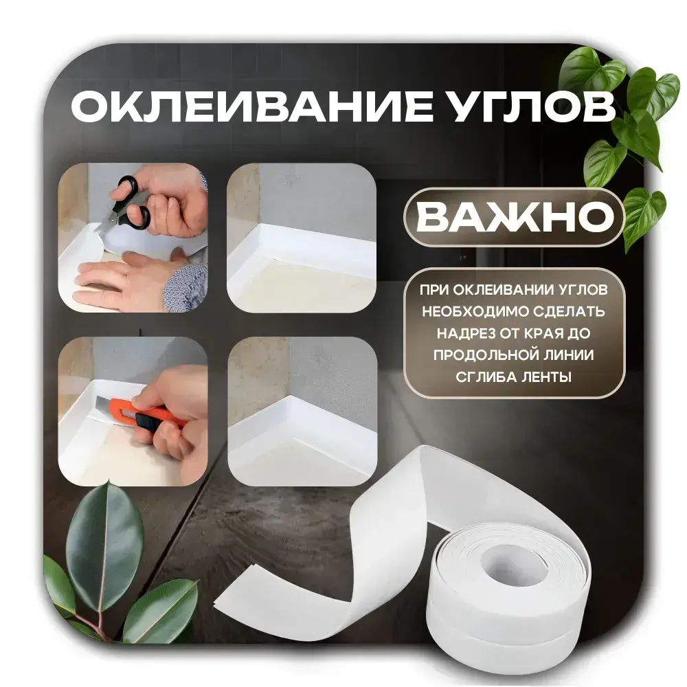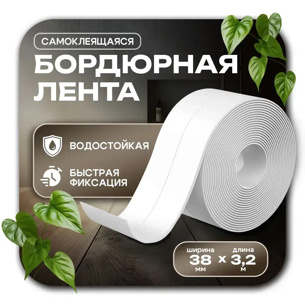 Бордюрная лента для ванны и кухни. Размер 38мм х 3,2м. Самоклеющаяся декоративная клейкая лента, декоративный скотч