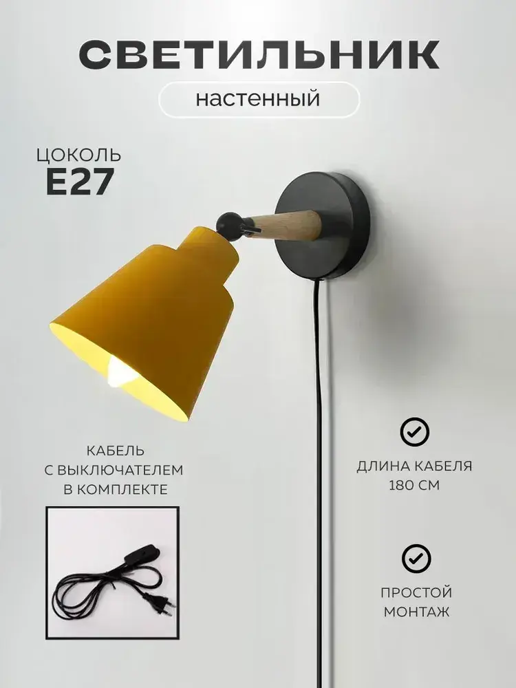 Бра настенный светильник Outframe, светильник настенный, цоколь Е27, желтый