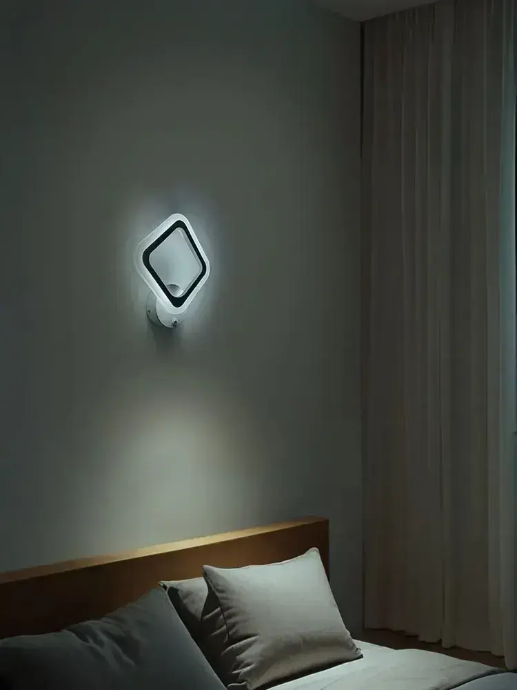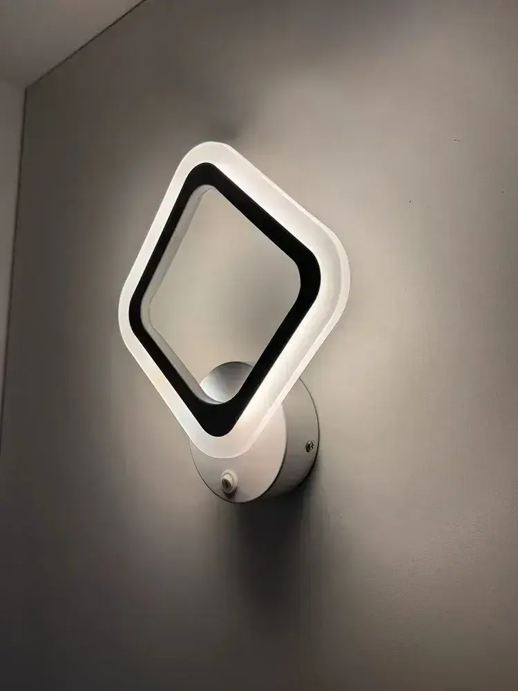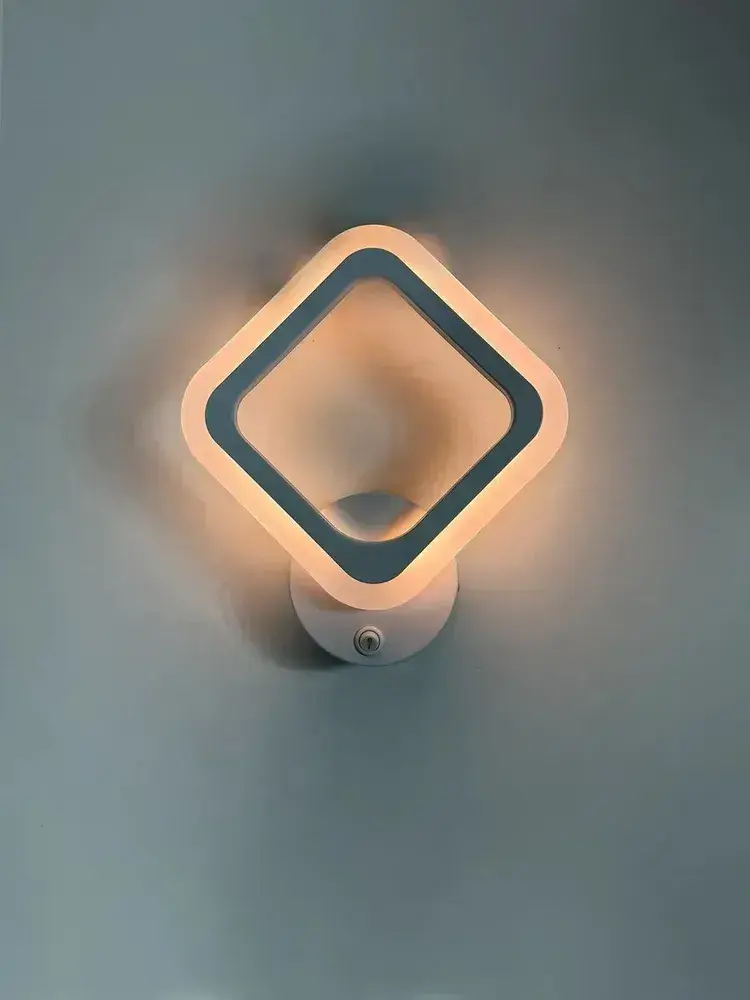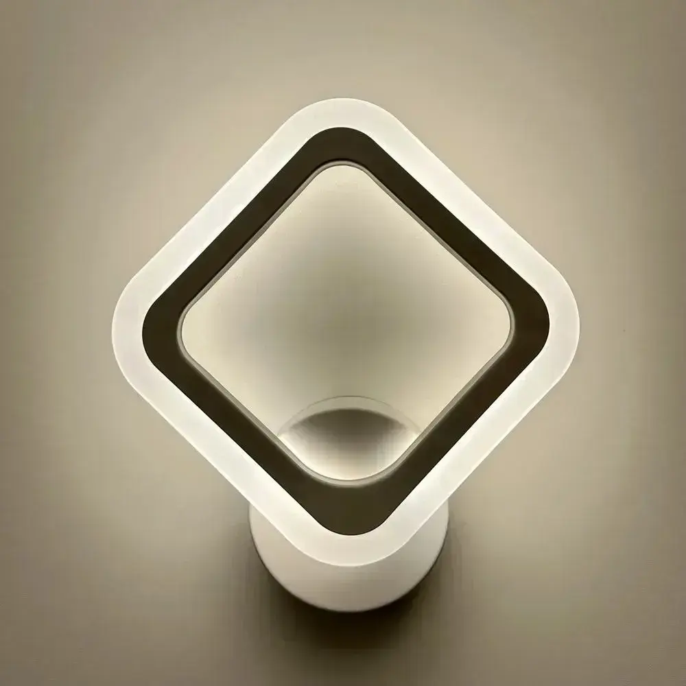 Бра с кнопкой, настенный светодиодный светильник белый, ромб, квадрат 8822/1 WH, 16 ВТ, комнатное освещение 5 кв. м. 1801
