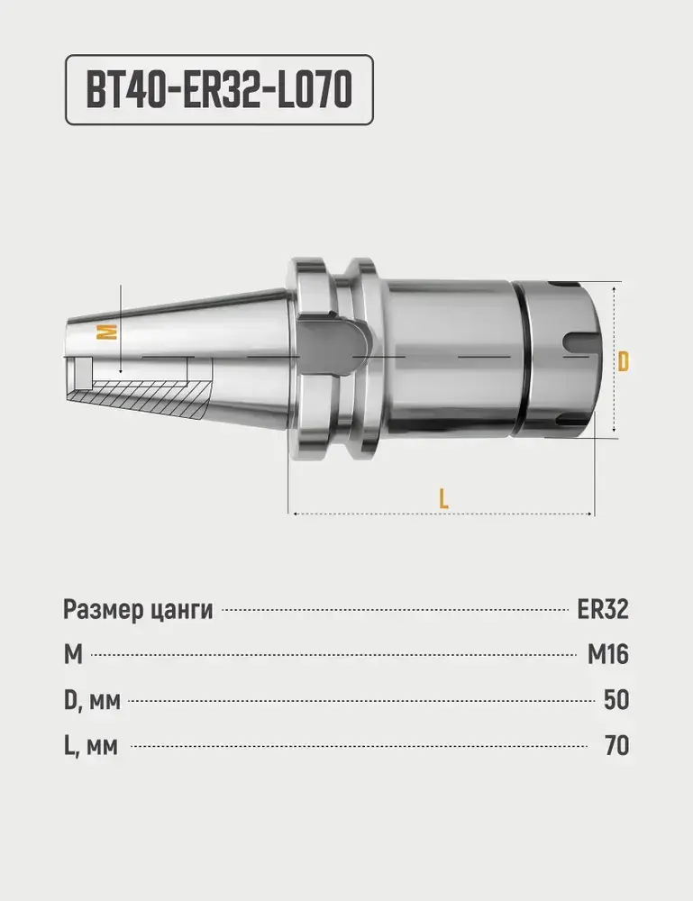 BT40-ER32-L070 Цанговый патрон, оправка для фрезерного станка