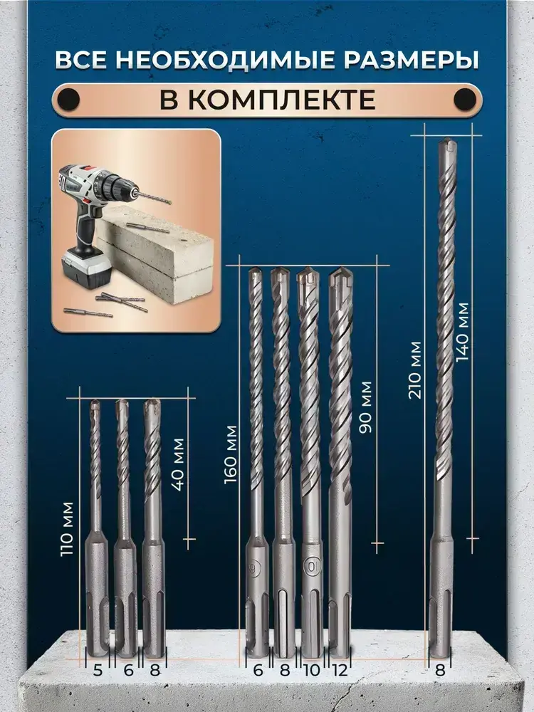 Бур для перфоратора по бетону 8шт