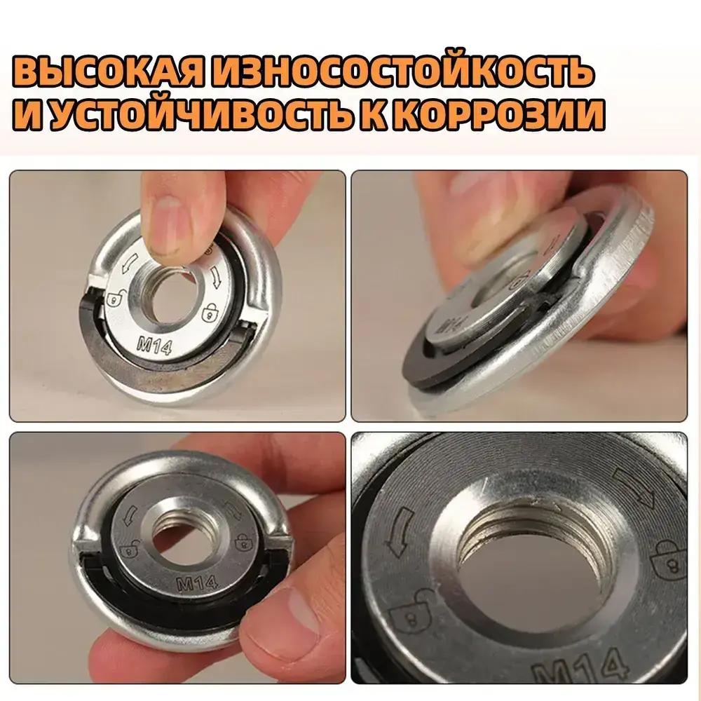 Быстрозажимная гайка на УШМ M14 без ключа /Оснастка для инструмента/Для болгарки.2шт.