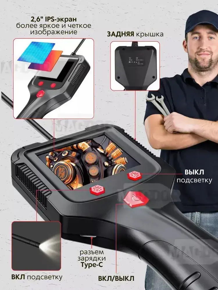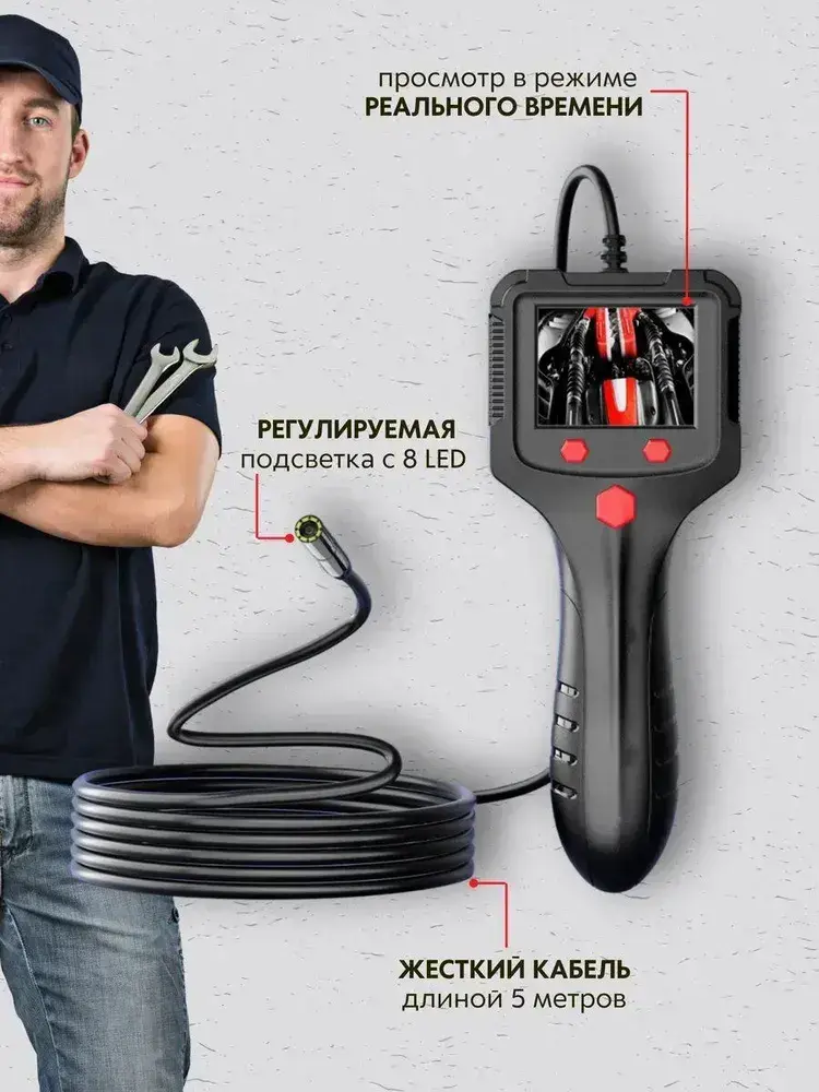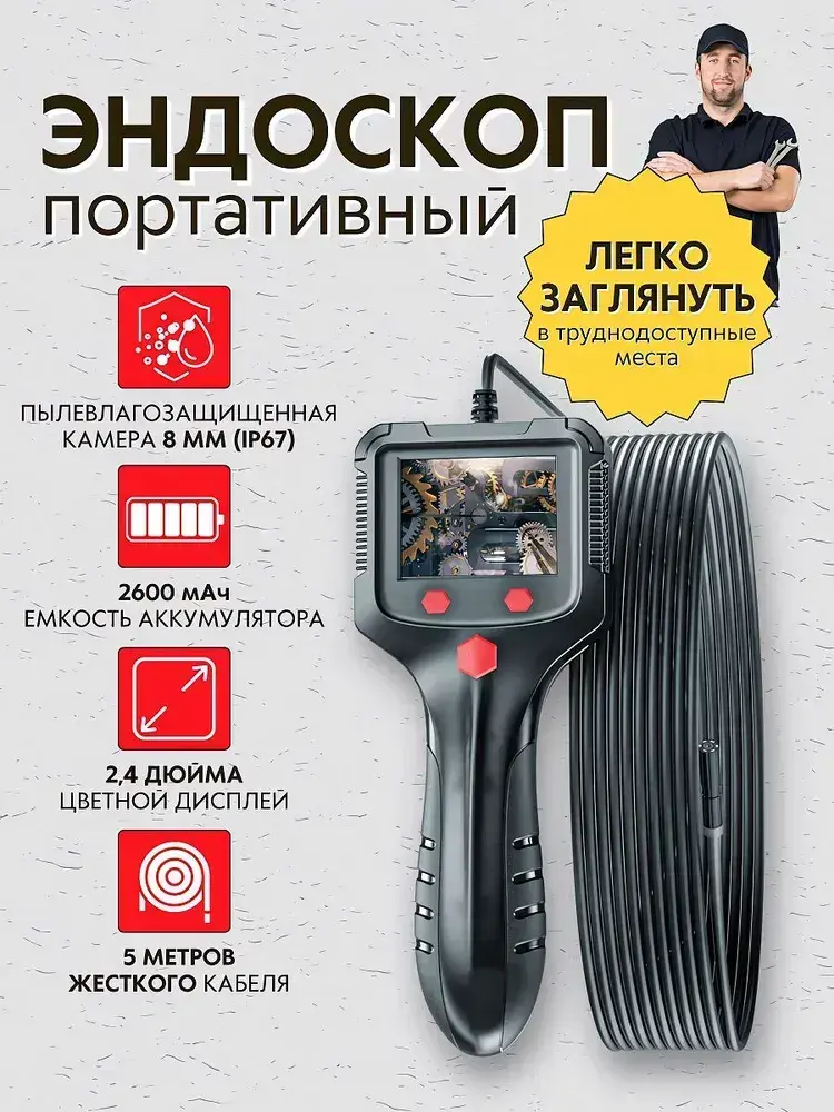 Бытовой камера-эндоскоп 2,4 дюйма IPS экран с водонепроницаемый 8 мм светодиодный объектив